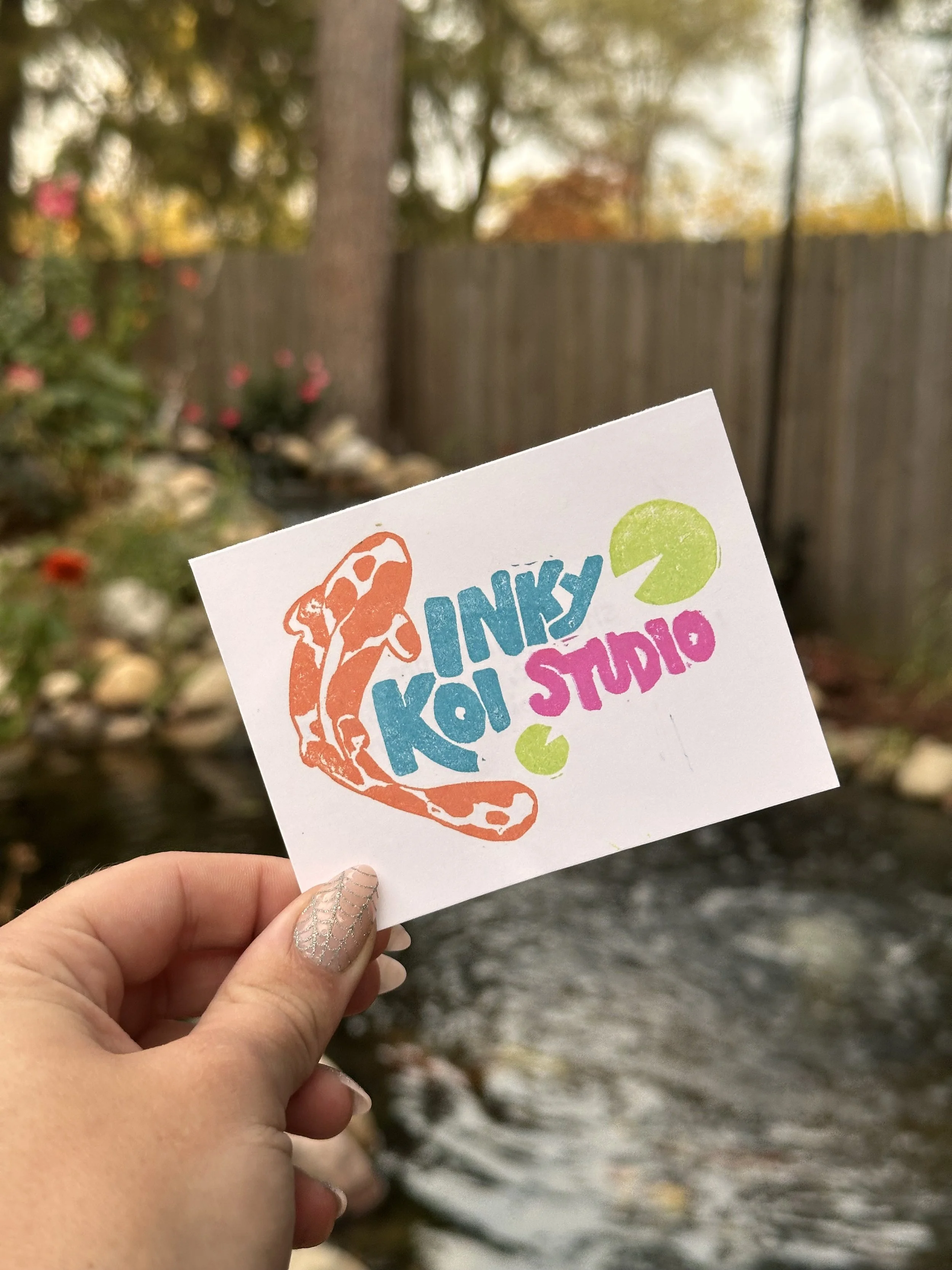 I’m the artist behind The Inky Koi Studio! Inspired by Michigan’s wild places and my own backyard pond, I handcraft prints, art, and nature-themed accessories designed to spark joy and curiosity. When I’m not carving or printing, you’ll probably find me and my partner rock hunting along the lakeshore, fishing, or enjoying time by the water here in Big Rapids.